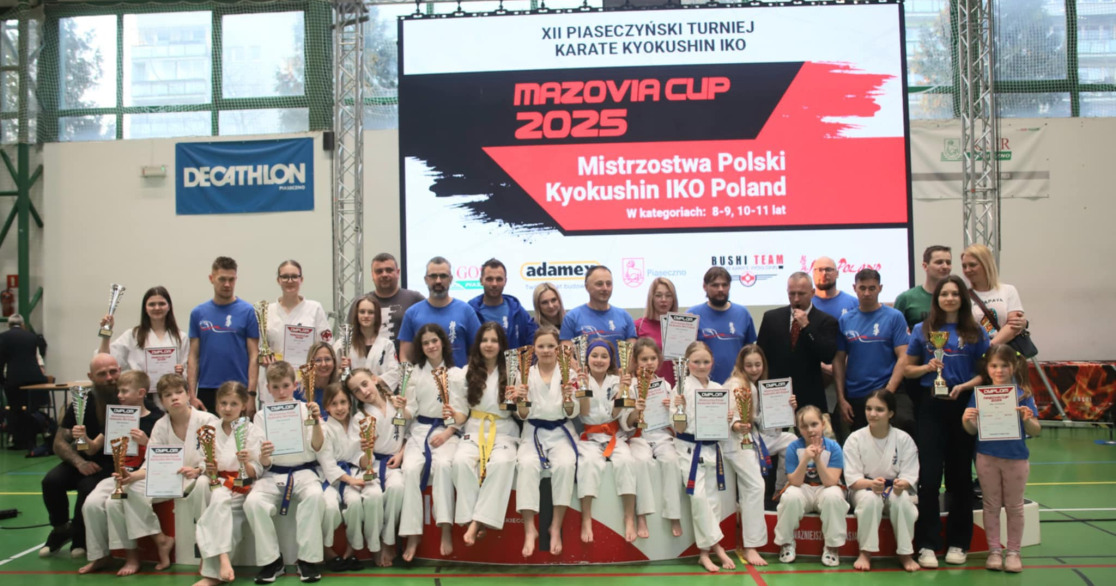 minioną sobotę w Piasecznie odbyły się Mistrzostwa Polski Kyokushin IKO Poland w kategoriach wiekowych 8-11 lat oraz Mazovia Cup, które zgromadziły blisko 500 zawodników z całej Polski. Był to pierwszy start OKKK w tym roku i od razu przyniósł kolejne podium w klasyfikacji drużynowej. Spośród 49 drużyn, nasz klub uplasował się na 3. miejscu.